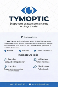 Connaissant parfaitement les contraintes d’un atelier d’optique — précision, rapidité, fiabilité du matériel — il a conçu TYMOPTIC comme une marque dédiée aux opticiens .